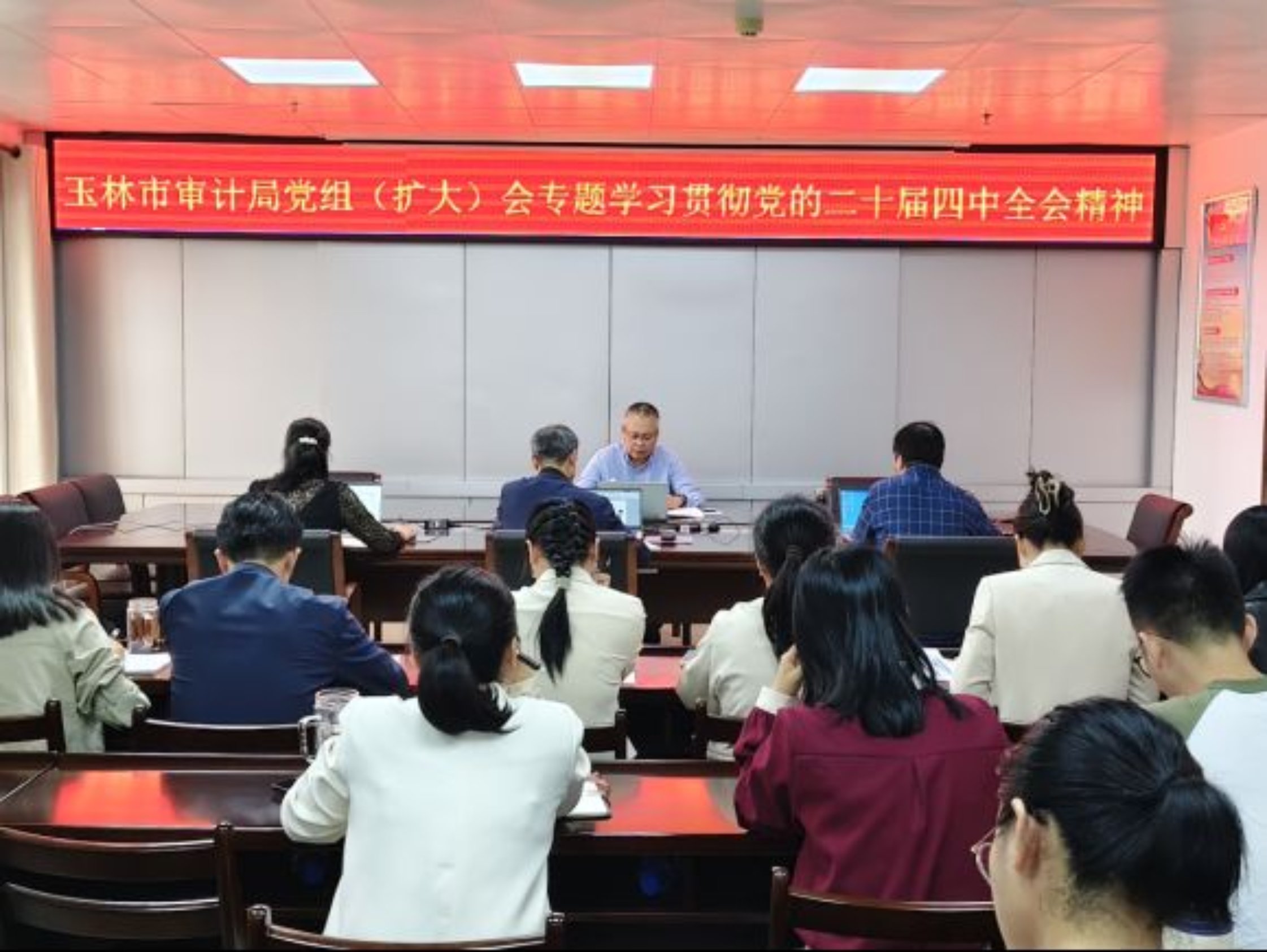 (图为玉林市审计局党组(扩大)会专题学习党的二十届四中全会精神会议现场)
