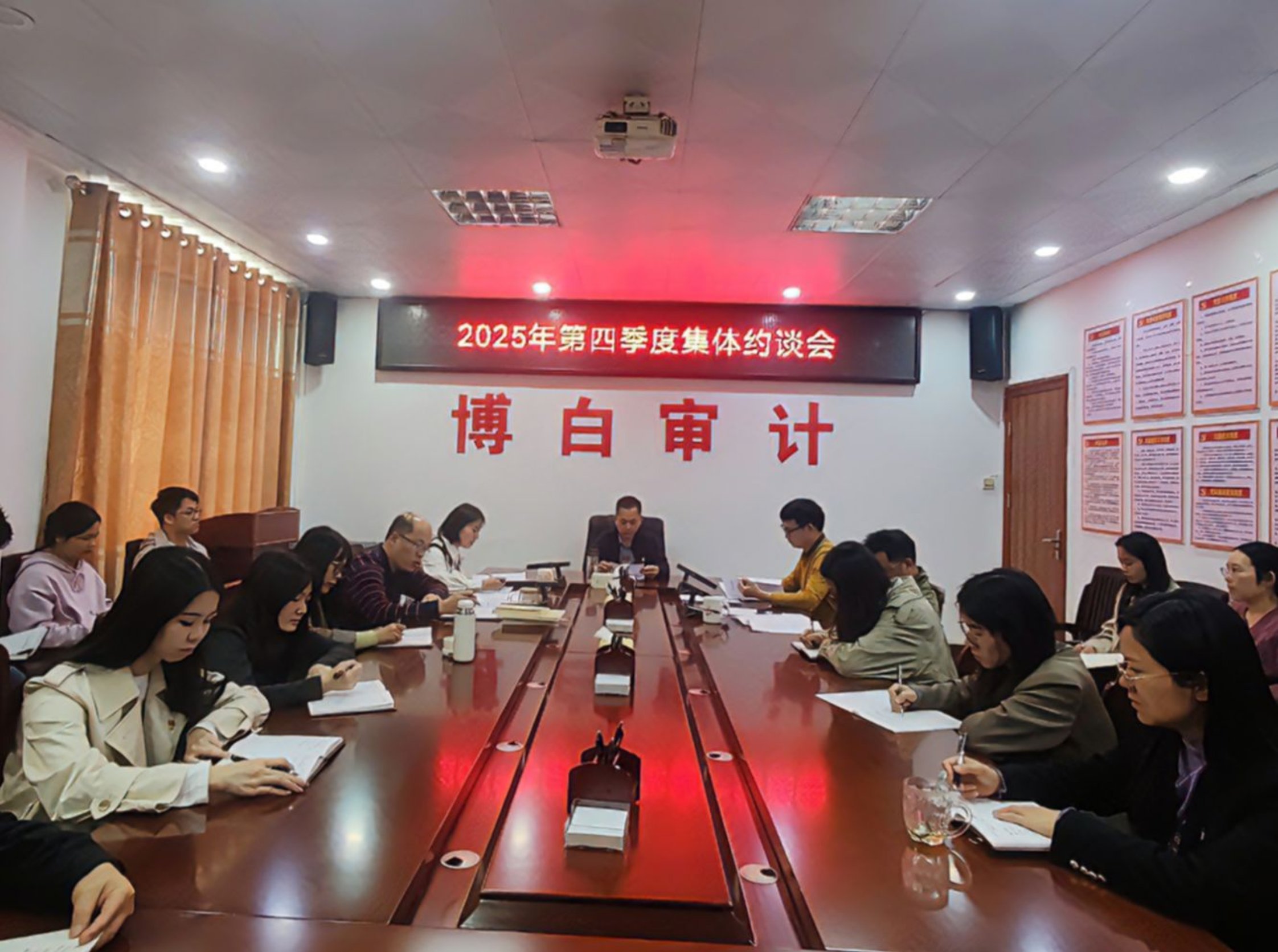 2025年12月24日上午,博白县审计局召开第四季度集体约谈会,全局干部职工参加。