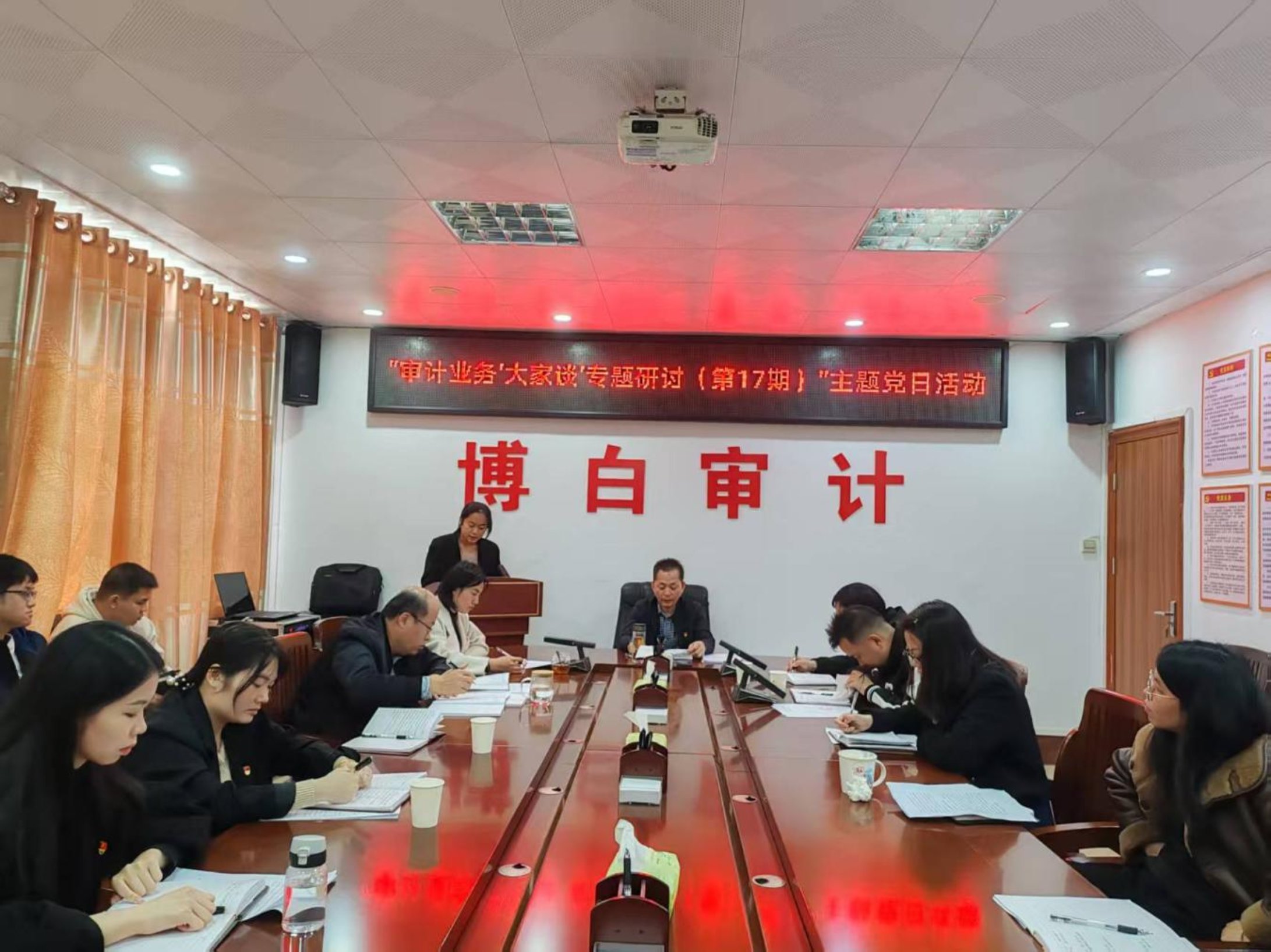 1月29日上午,博白县审计局组织开展“审计业务‘大家谈’专题研讨(第17期)”主题党日活动,对2025年度审计项目进行集中复盘,推动党建与审计业务深度融合。