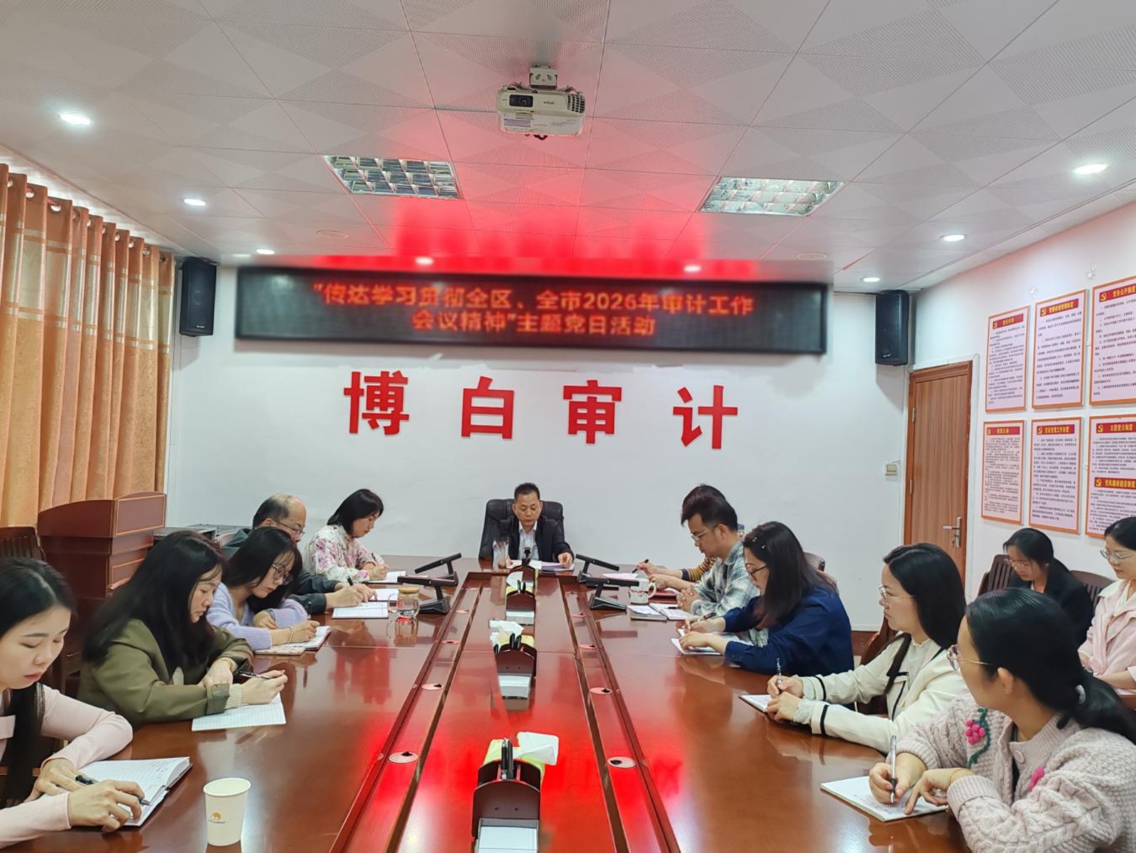 2月25日上午,马年春节收假第二天,博白县审计局召开审计机关党员、干部职工会议,结合2月份主题党日活动,传达学习全区、全市2026年审计工作会议精神,引导大家迅速收心归位,以“开局即冲刺”的劲头投入新一年工作。